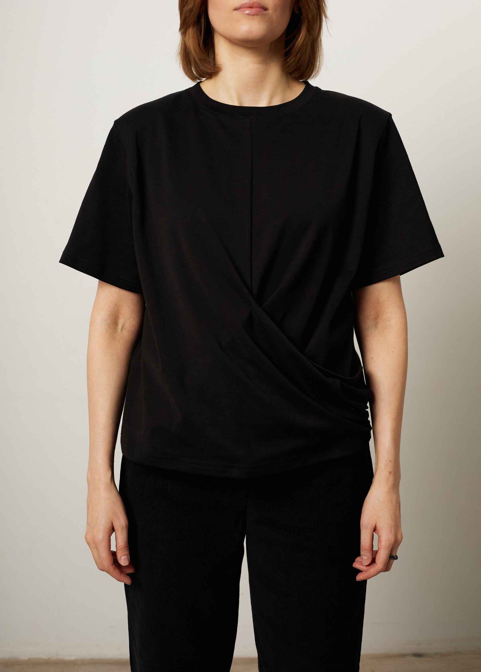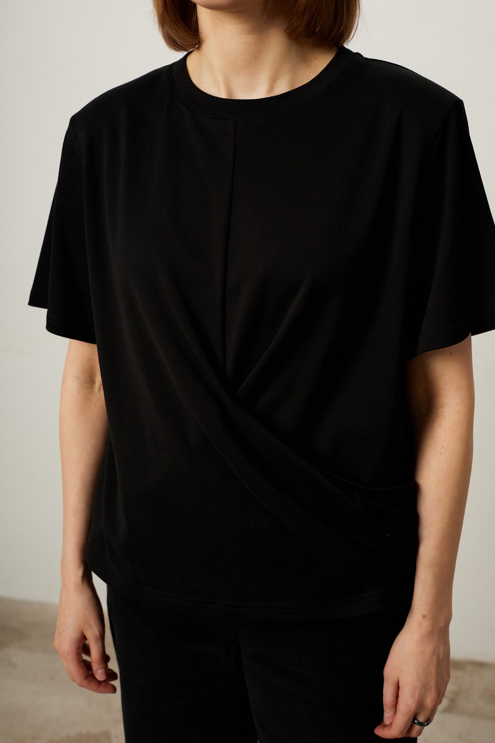 Черная футболка с драпировкой